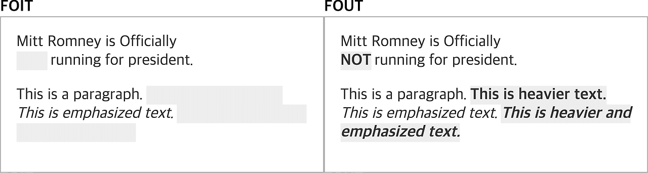 Flash of Unstyled Text (FOUT)란, 브라우저가 폰트를 다운로드하기 전까지 폰트가 적용되지 않는 현상을 말한다.